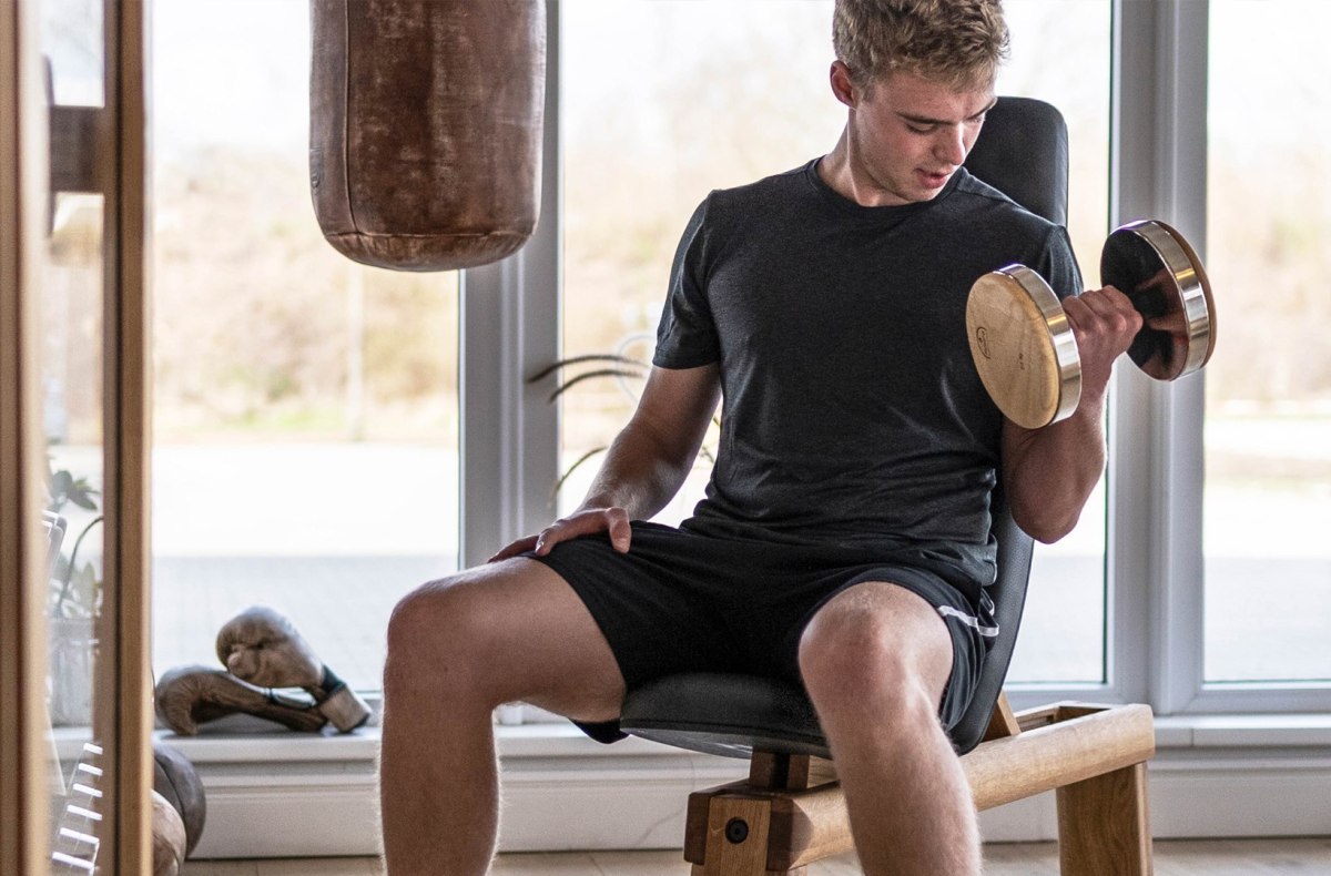 The NOHRD BenchPress bench press meets all the requirements of a functional weight bench combined with an attractive aesthetic. The frame is made of solid wood and impresses with its stability and polished edges. The hand-stretched leather (artificial or natural, depending on the selected model of the bench) perfectly complements its appearance and gives it the character of an exclusive product that fits perfectly into any room.