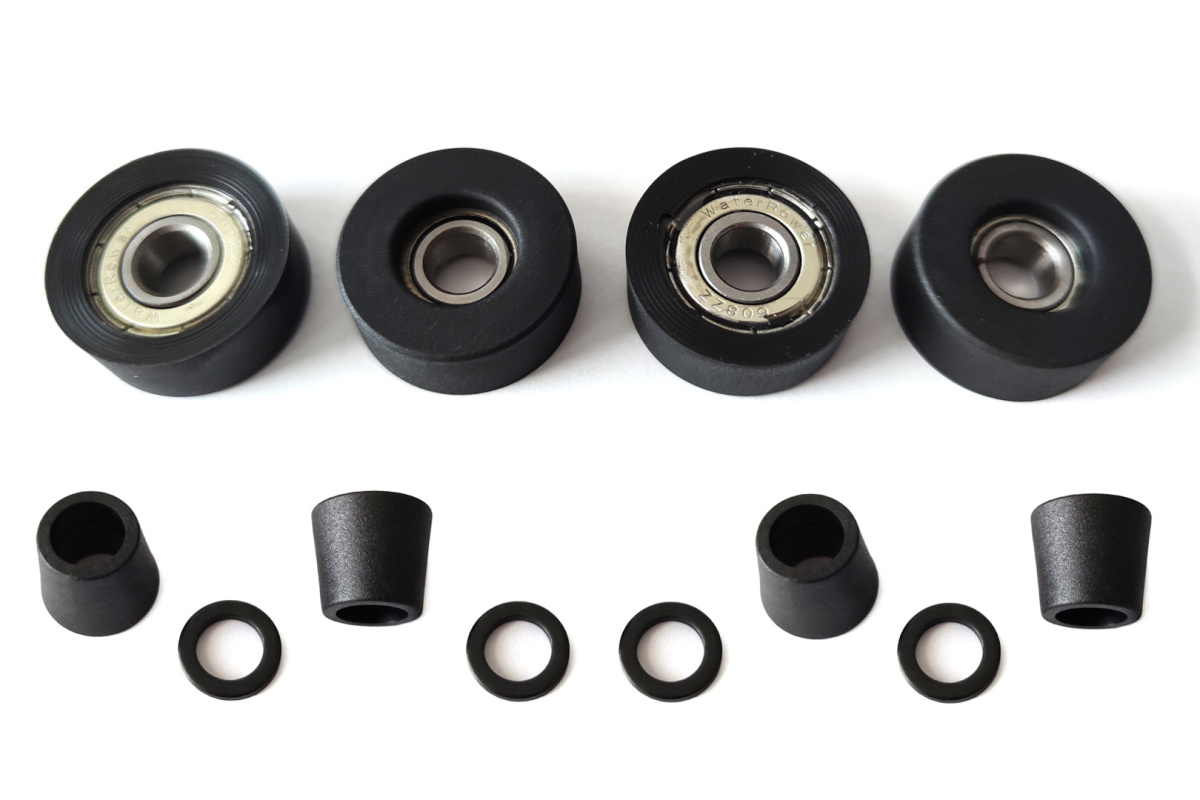 A set of stabilizing wheels for WaterRower Machines. The set include 4 wheels. Stabilizing wheels are used to support and stabilize the side seat of the WaterRower Machines.
