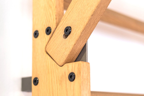 - Zintegrowane ramię przedłużające - ćwiczenia wiszące i podciągnięcia na WallBars mogą zostać przeprowadzone dzięki górnemu szczeblowi, który można łatwo rozłożyć i zablokować przy pomocy mechanizmu blokującego. Ramie przedłużające jest stabilne, dzięki czemu zapewnia komfort podczas wykonywania ćwiczeń wiszących i kołyszących.