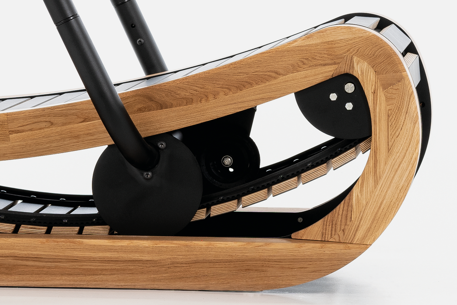 Rama wykonana z wysokiej jakości drewna odpowiada nie tylko za unikalną estetykę, ale również za stabilność i trwałość. Drewno jako naturalny materiał wspiera redukcję wibracji oraz zapewnia odpowiednią amortyzację podczas biegu. Połączenie precyzji obróbki z ręcznym wykończeniem gwarantuje wysoką jakość detali oraz długą żywotność urządzenia.