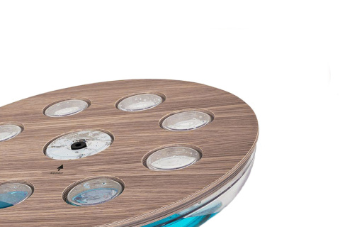 Platforma do balansowania Eau-Me Board została wykonana z wysokiej jakości drewna dębowego. Połączenie podstawy ze zbiornikiem na wodę wykonanym z polikarbonu skutkuje skutecznym i wydajnym treningiem równowagi. Dzięki platformie Eau-Me poprawimy koordynację ruchową oraz kondycję.