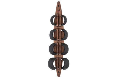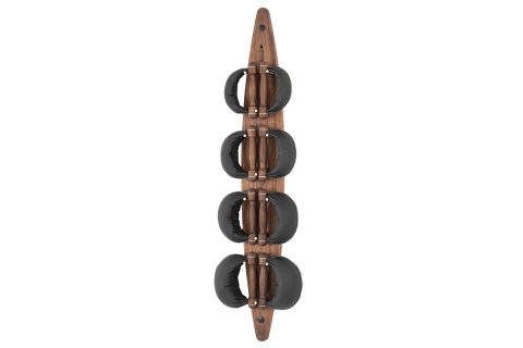 Tablica z hantlami SwingBell została wykonana z litego drewna i może pomieścić osiem hantli, czyli kompletny zestaw. 4 pary skórzanych hantli jest zawieszone na wspornikach z najwyższej jakości stali nierdzewnej. Uchwyty do hantli również zostały wykonane z litego drewna.
