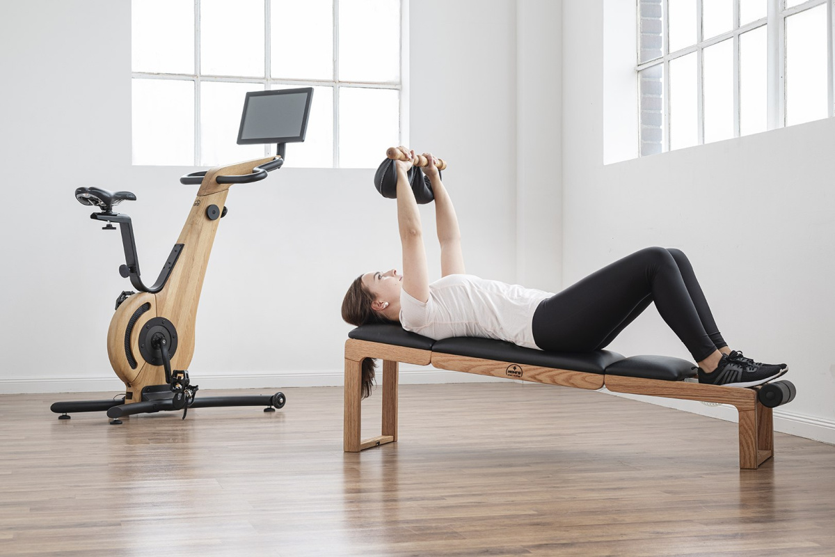 Rama ławki wykonana została z drewna wiśniowego, w pozycji podstawowej TriaTrainer wymaga mniej niż jednego metra kwadratowego powierzchni. Elastyczny podnóżek można regulować w dziesięciu pozycjach.